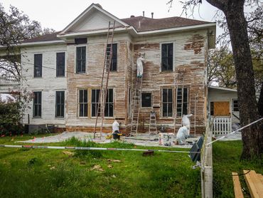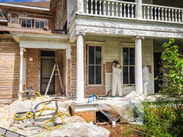 This project was an exterior renovation & repair. We removed the lead paint, installed custom milled siding, partial new roof, partial porch, and added bracers in attic. 3-4 months to completion.